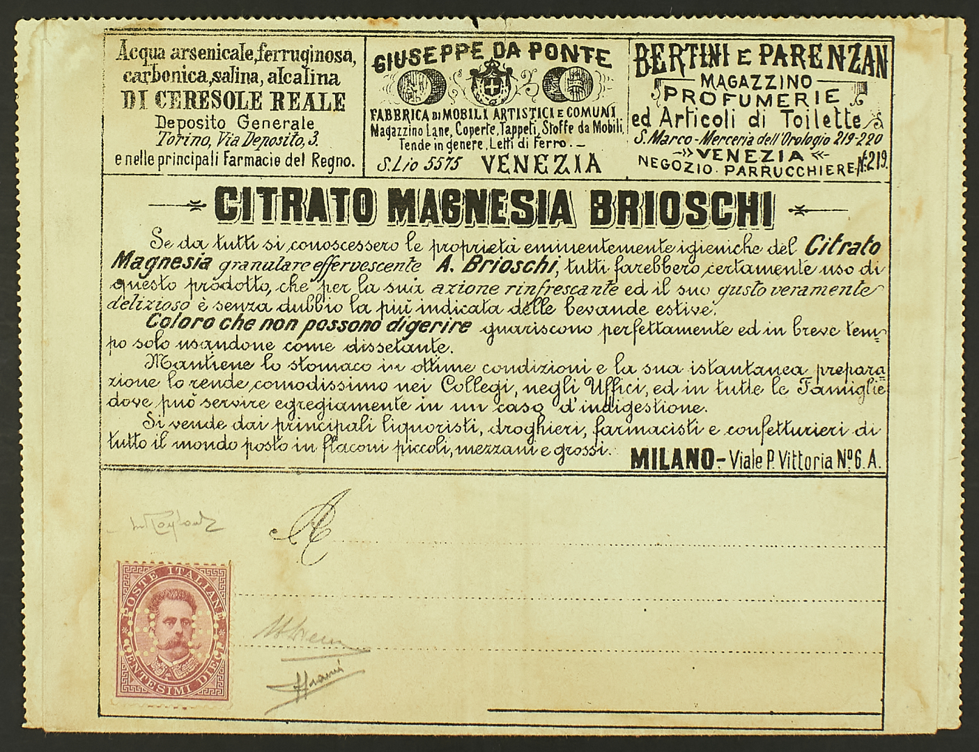 1887 - "8-8" 10 c. carminio su francalettera non viaggiata - Cert. Raybaudi - Firme A. Diena e Sorani
