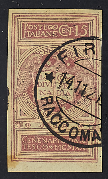 1921 - Dante 15 c. rosa brunastro non dentellato - Non comune - Firma Caffaz