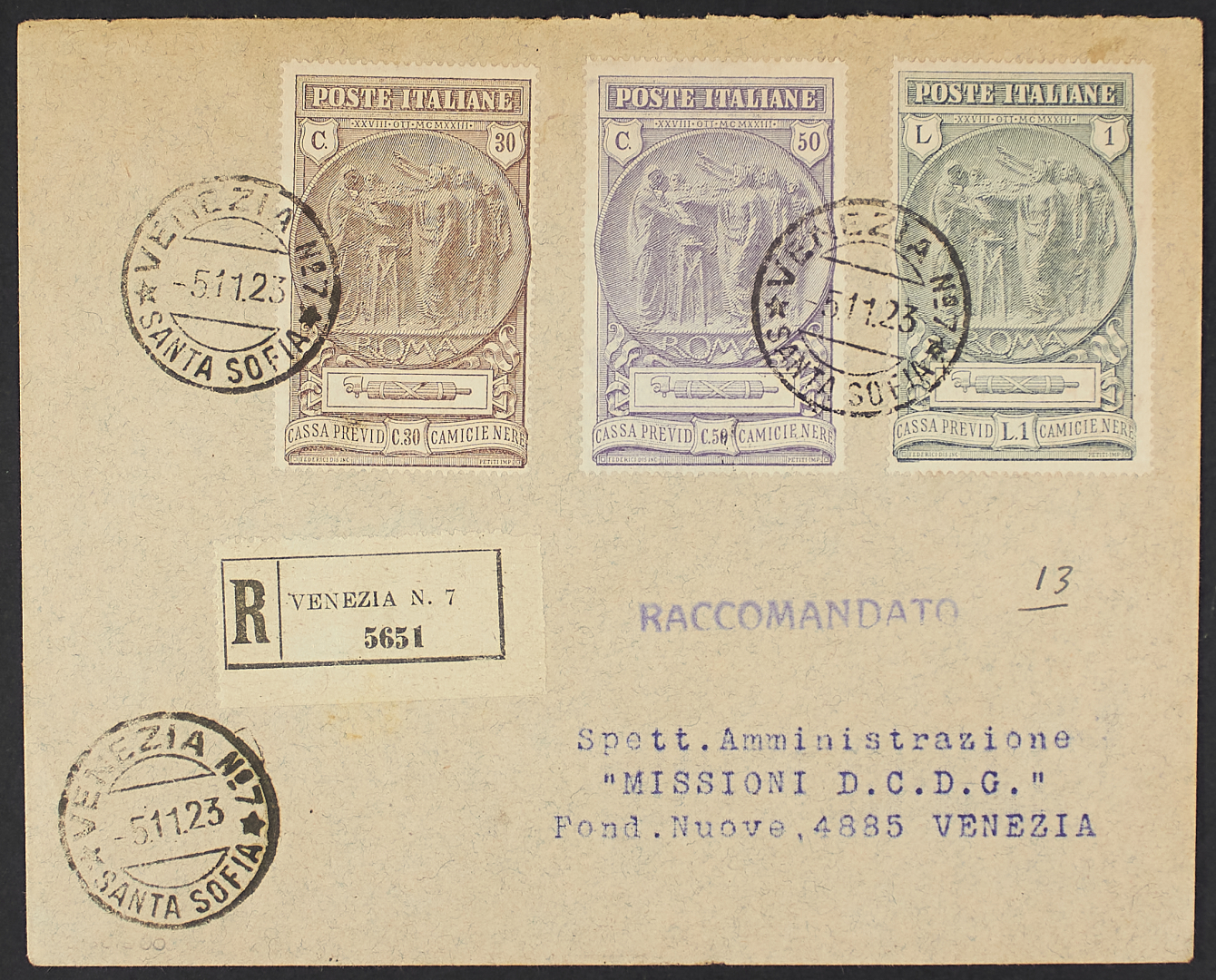 1923 - Camicie Nere - La serie su raccomandata del 5 novembre da Venezia per città