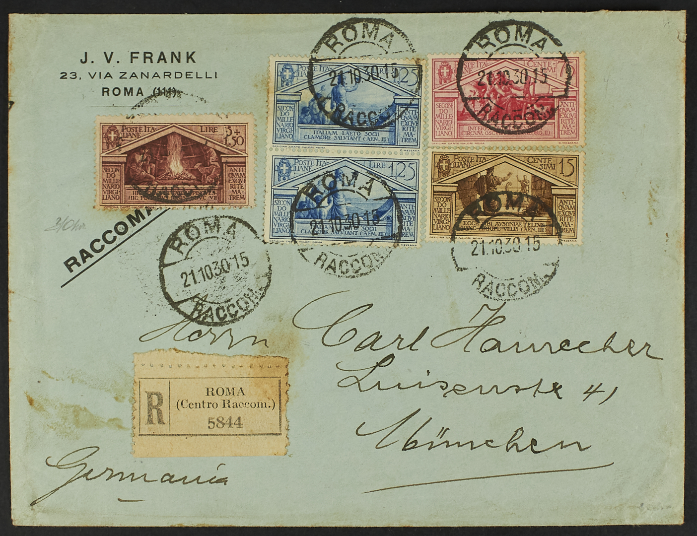 1930 - Virgilio -La serie su due raccomandate del 1930/31 da Roma per Monaco e per Berlino - Cert. Savarese