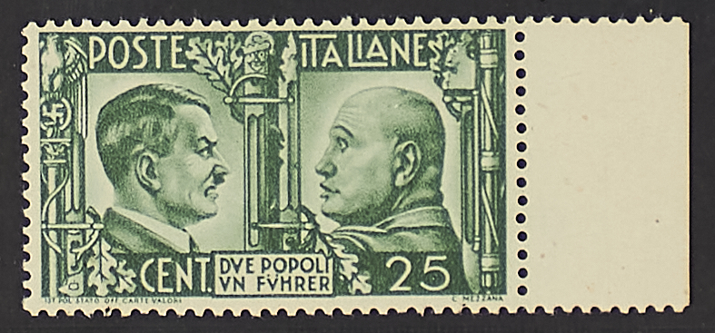 1941 - Falsi ironico 25 c. verde bordo di foglio a destra