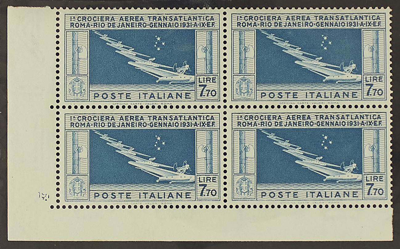 1930 - Balbo 7,70 blocco di quattro angolo di foglio inferiore sinistro - Da esaminare