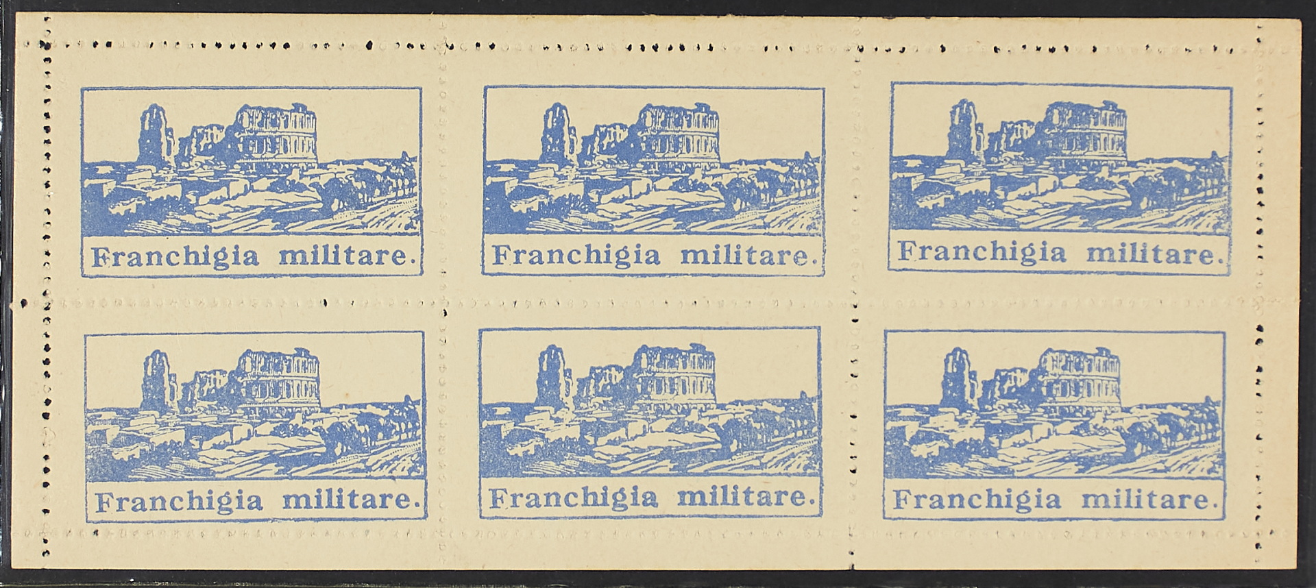 1943 - Anfiteatro di El Djem azzurro vivo - Il foglietto di sei esemplari - Cert. Diena