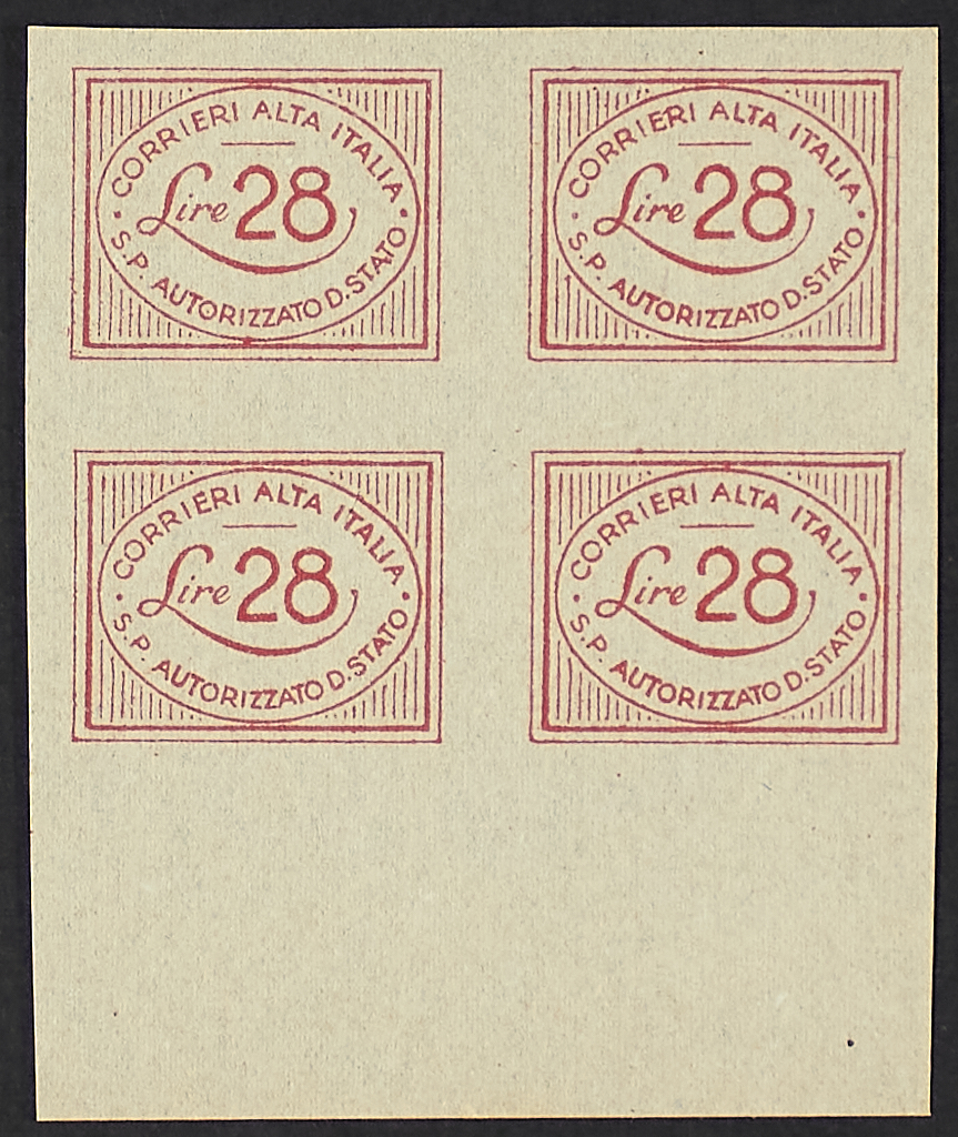 1945 - CORALIT - Prima emissione - La serie in blocchi di quattro bordo di foglio inferiore - Raro - Cert. Diena