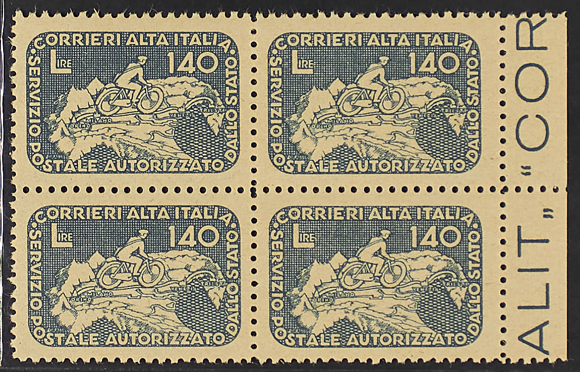1945 - CORALIT - Terza emissione - La serie in blocchi di quattro bordo di foglio a destra