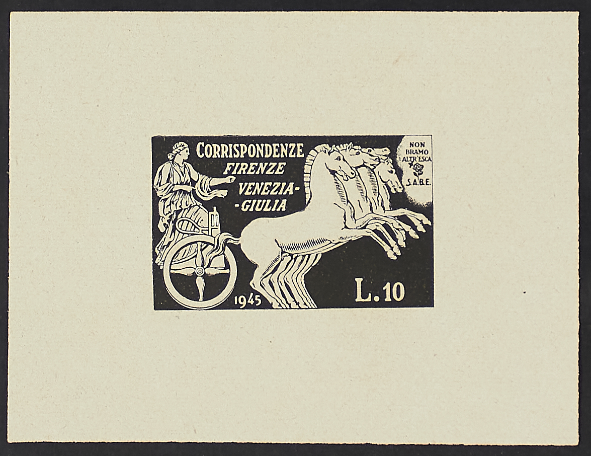 1945 - SABE 10 L. - Prova in nero su carta gessata e non gommata - Rara - Cert. Raybaudi