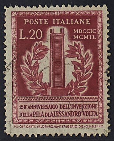 1949 - Volta 20 L. dent. 14 x 14 1/4 filigrana ruota I tipo pos. CS - Non comune