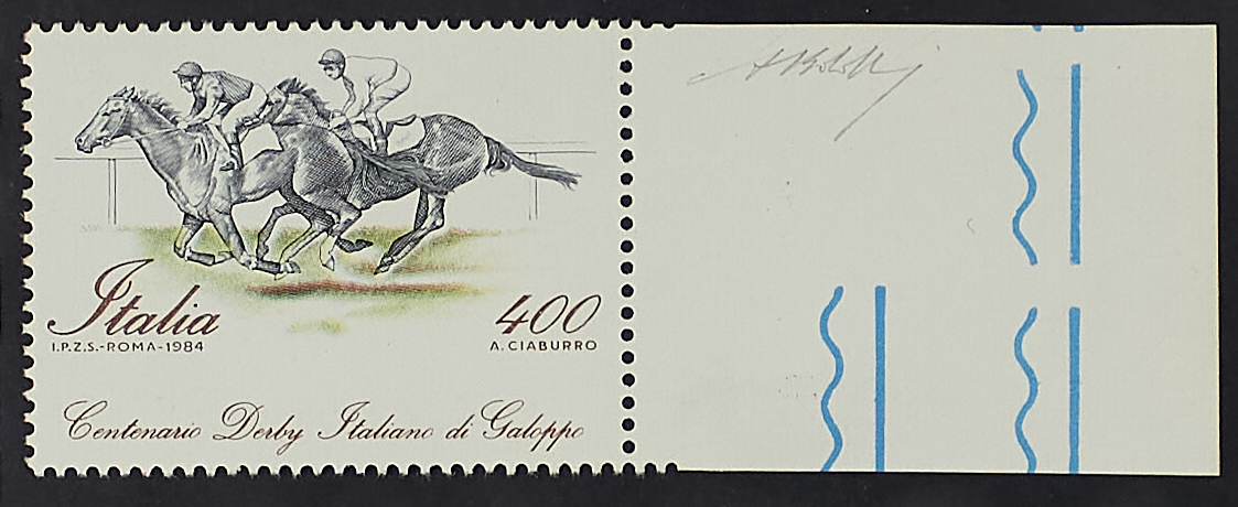 1984 - "Derby in pista" 400 L. bordo di foglio a destra - Raro - Cert. Bolaffi