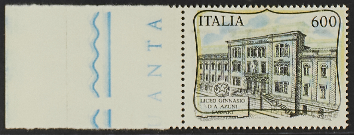 1991 - 600 L. "Liceo grigio" bordo integrale di foglio a sinistra - Cert. Bolaffi