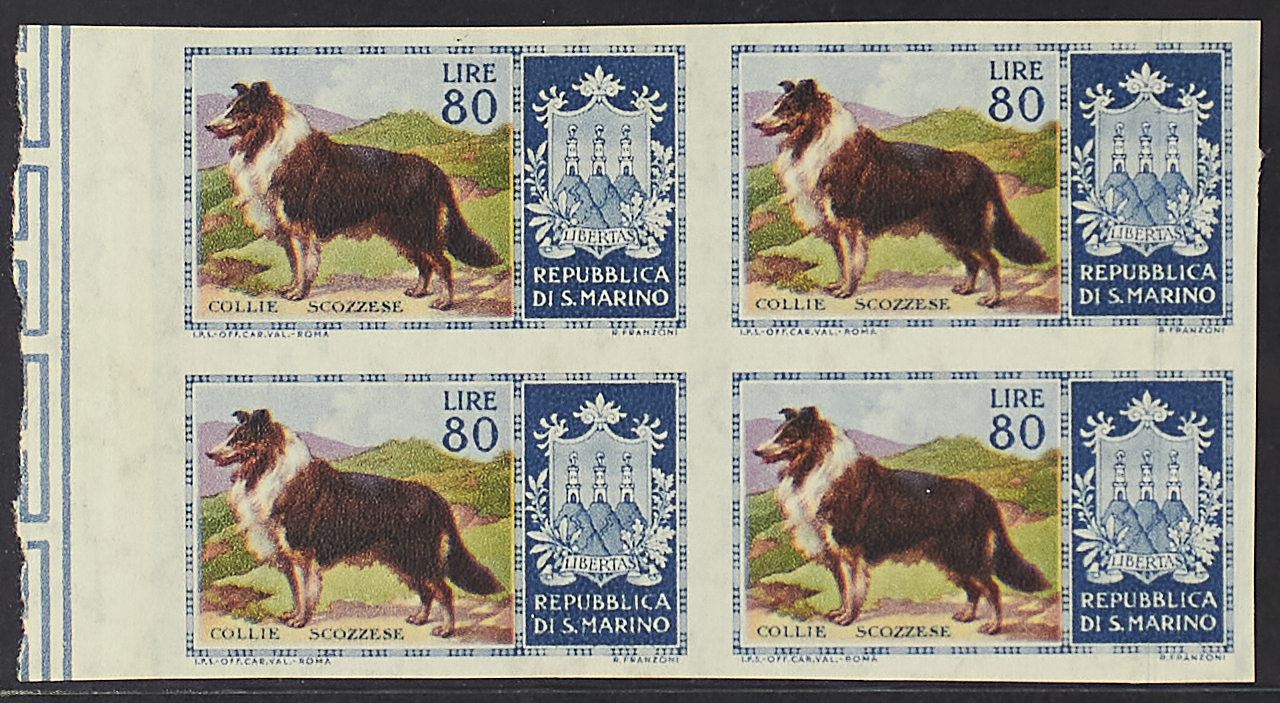 CANI 25 L. + 80 L. BLOCCO DI QUATTRO + 100 L. TUTTI NON DENTELLATI