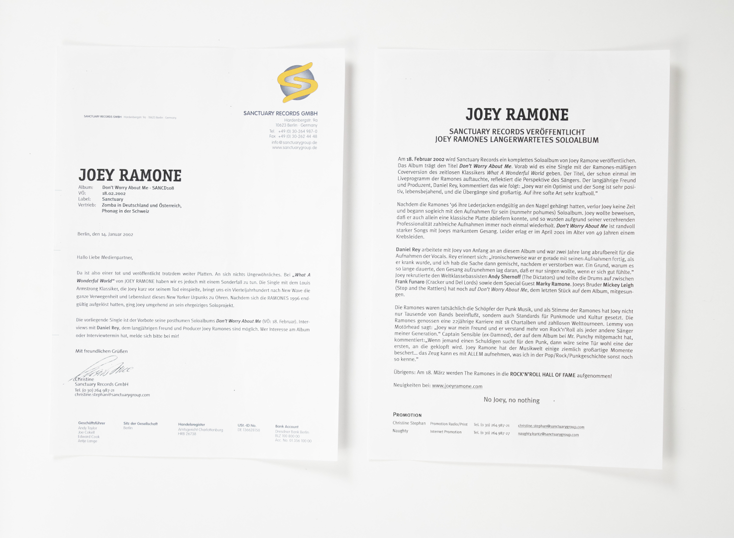 La collezione è composta da 3 singoli su 45 giri in collaborazione con altri artisti: The Rattlers/On the Beach (1979, Ratso Records – RR-401), The Seclusions/The Shape Of Things To Come (1983, Fuz Records – 007) e The Nomads/The King Of Night Train (2000, White Jazz Records – 7JAZZ027); 5 cd dell'artista: Rockaway Beach (1994), What A Wonderful World (2001), Don't Worry About Me (2002), Christmas Spirit (2002), e un cd promo What A Wonderful World del 2002 completo delle relative 4 pagine in tedesco della Sanctuary Records