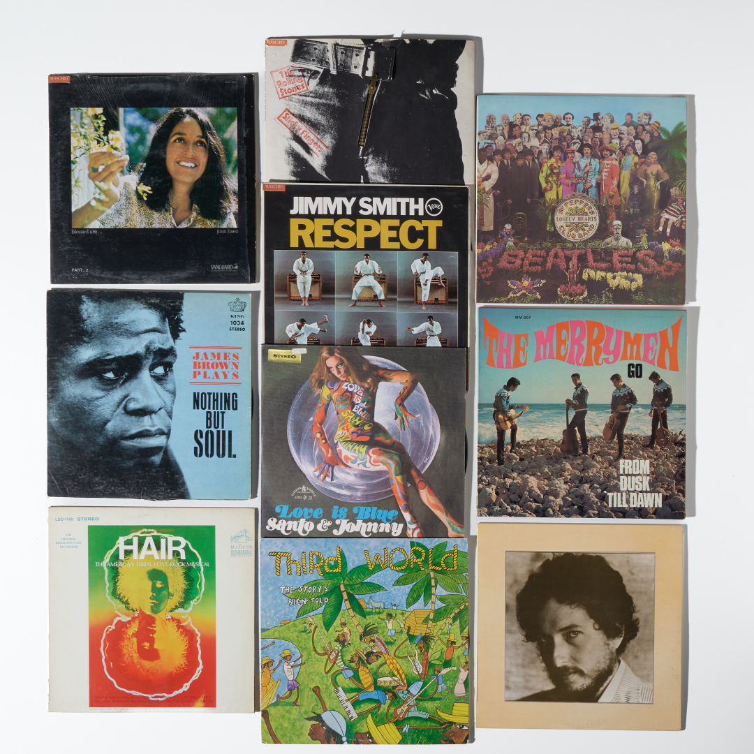 Titoli: The Rolling Stones – Sticky Fingers (COC-59100), Bob Dylan – New Morning (S-69001), Santo & Johnny – Love Is Blue (CAN. LP. 78), Joan Baez – Blessed Are... Part. II (SVAL 33027), Third World – The Story's Been Told (ILPS 9569), James Brown & The Famous Flames – James Brown Plays Nothing But Soul (King Records (3) – 1034), Various – Hair - The American Tribal Love-Rock Musical (LSO-1150), Jimmy Smith – Respect (SVLP 9182), The Merrymen – Go From Dusk Till Dawn (MM-007), The Beatles – Sgt. Pepper's Lonely Hearts Club Band (PCS 7027)