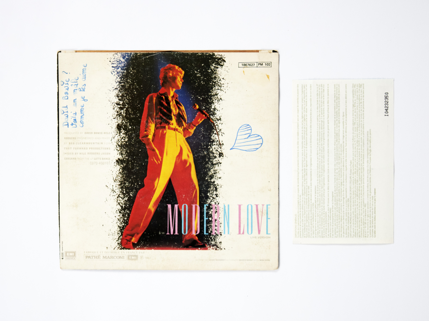 45 giri autografato da David Bowie, incluso biglietto del concerto al Palais Omnisports, Parigi 20 ottobre 2003