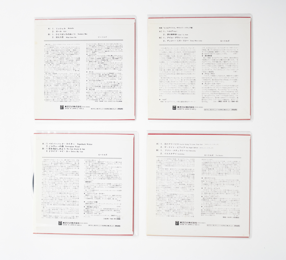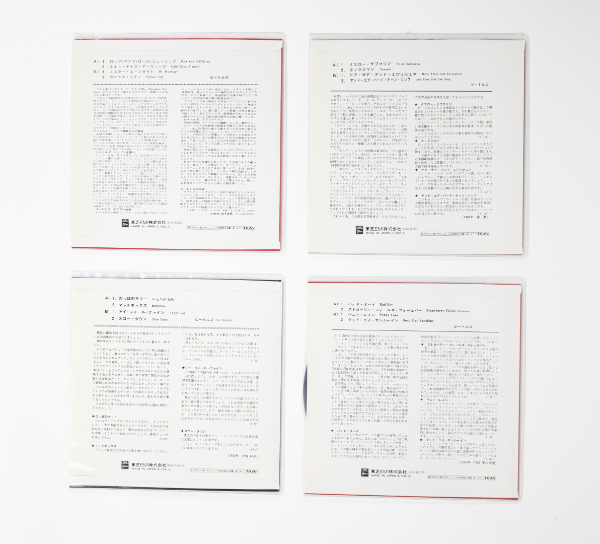 Titoli:  All my loving (EAS-30003), A Hard Day's Night (EAS-30002), Anna - Go to him (EAS-30008), Twist and Shout (EAS-30001), Michelle (EAS-30009), Bad Boy (EAS-30012), Help! (EAS-30006), Long Tall Sally (EAS-30004), Yellow Submarine (EAS-30011), Yellow Submarine (EAS-30011), Rock and Roll Music (EAS-30005), You're going (EAS-30007), Paperback Writer (EAS-30010)