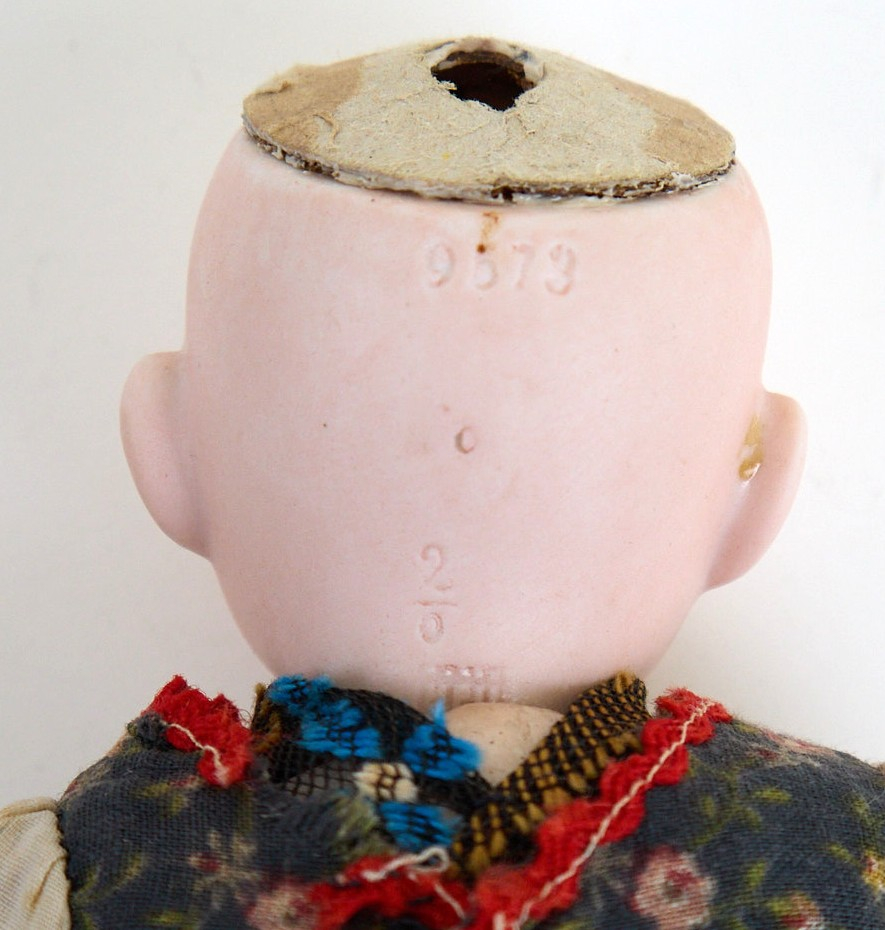 marcata 9573, testa di porcellana, corpo composizione, vestiti originali