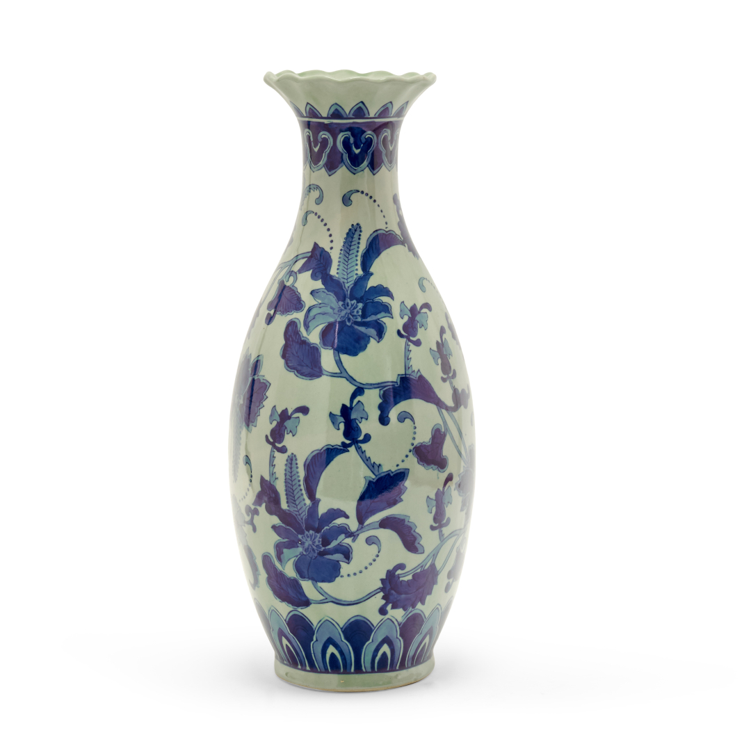 Porcellana 'bianco e blu', decoro floreale.