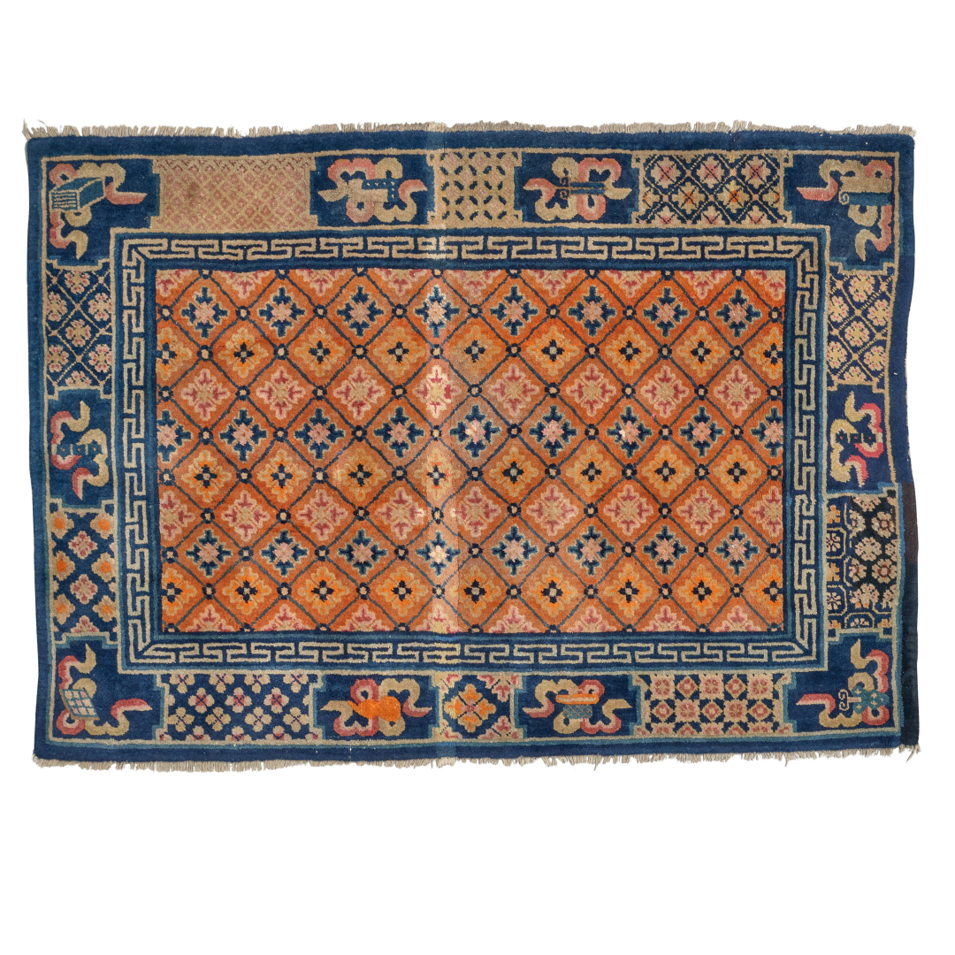 Decoro policromo di motivi geometrici e oggetti di buon auspicio.