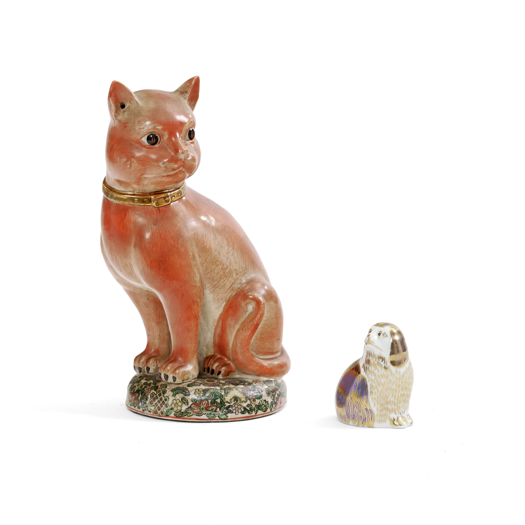 Porcellana dipinta a smalti policromi, insieme a piccola porcellana modellata come cane.