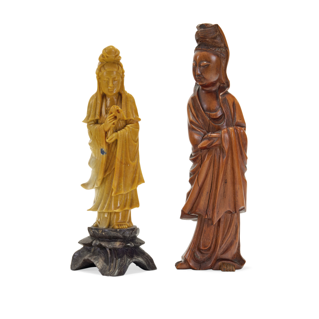Una in legno, l’altra in pietra saponaria, su base in legno.