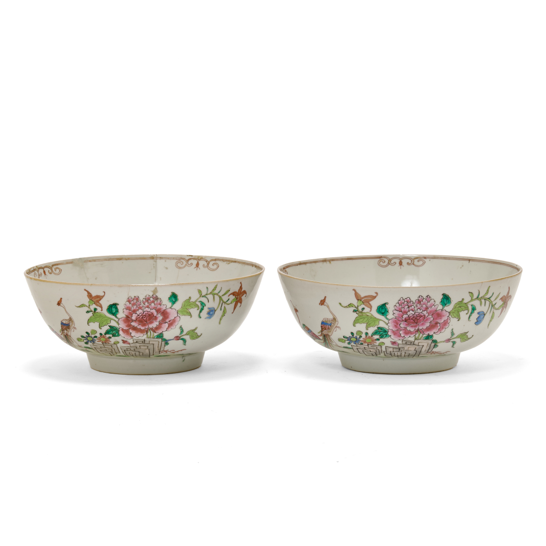 Porcellana dipinata a smalti policromi della 'Famiglia Rosa' e oro, l'esterno con fiori e uccello.