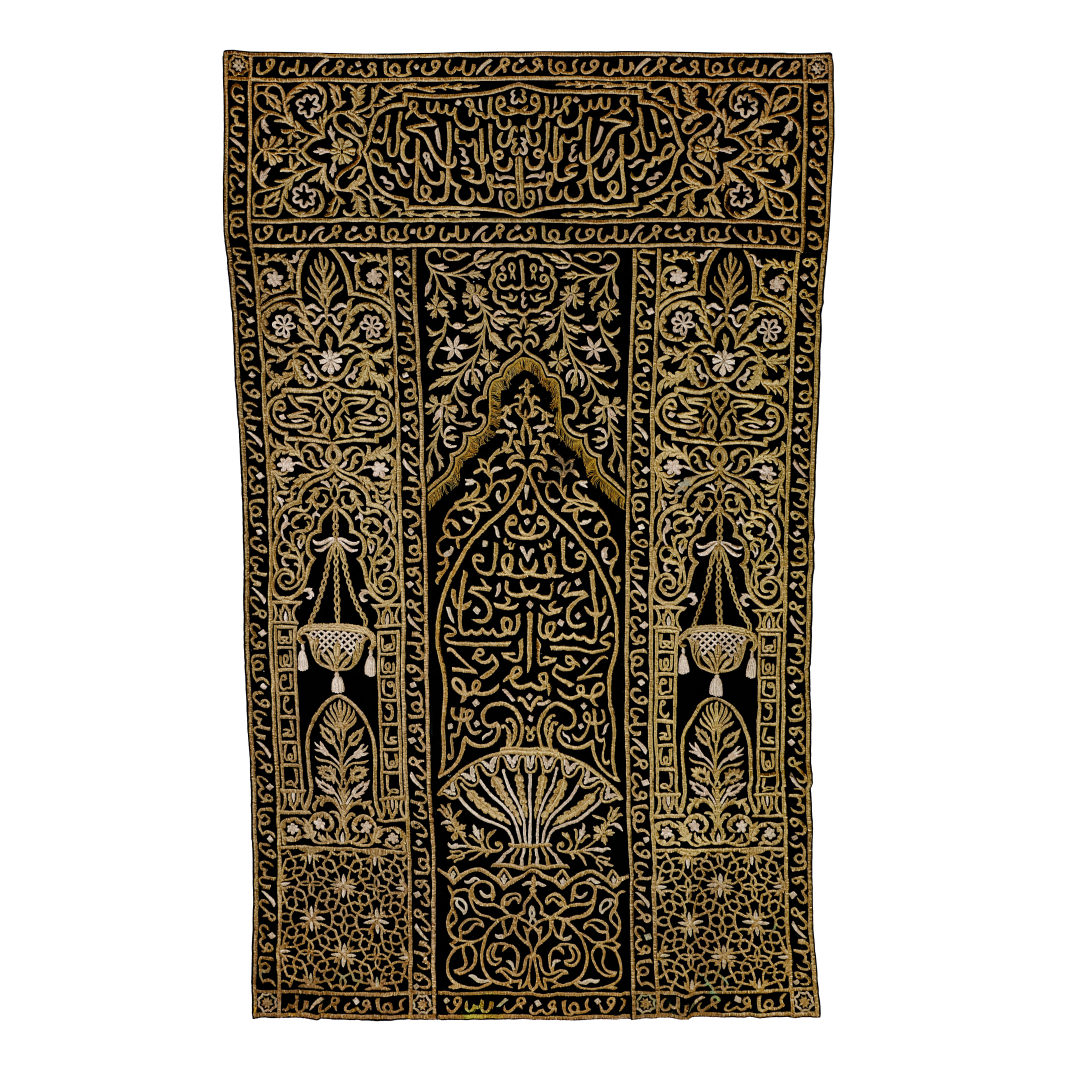 Velluto fondo nero con elaborato decoro a fili d'oro.