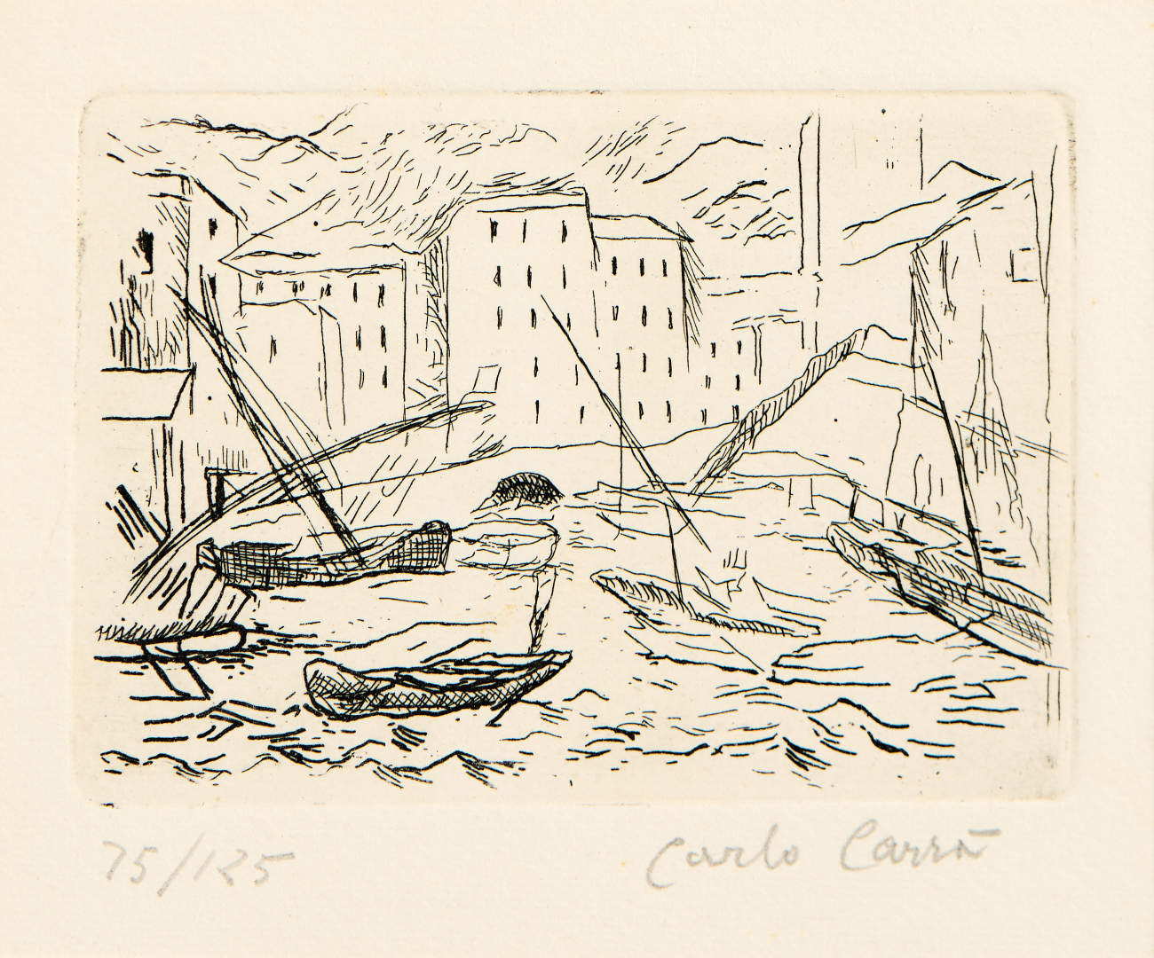 Assieme: Marina a Camogli (Barche in porto), 1966, acquaforte e puntasecca, ed. 95/125, 12,50 x 17,50 cm, firmato al recto in basso a destra, numerato a sinistra.