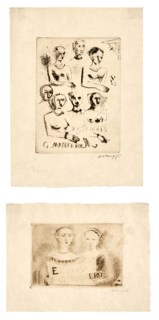 Lotto completato da: Gruppo di donne con autoritratto (Ex libris), 1938, puntasecca su carta Giappone, 18,00 x 14,00 cm, firmato al recto in basso a destra e su lastra.