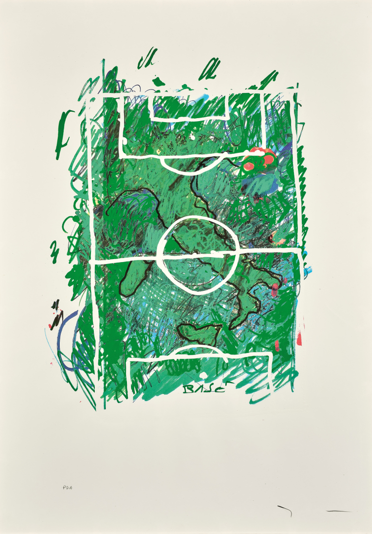 Lotto completato da: Campo da calcio, litografia a colori, ed. P.A., 70,00 x 50,00 cm, firmato al recto in basso a destra, numerato a sinistra.