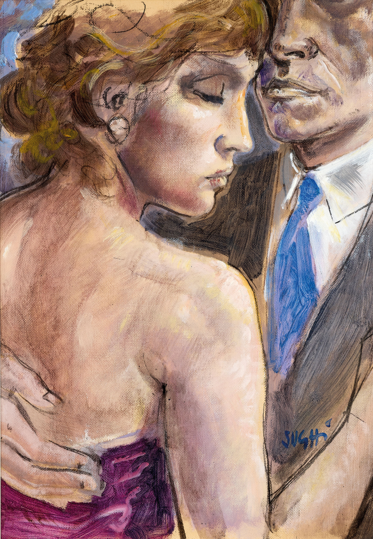 Assieme: Il ballo, tecnica mista su carta riportata su tela, 50,00 x 35,00 cm, firmato al recto in basso a destra.
